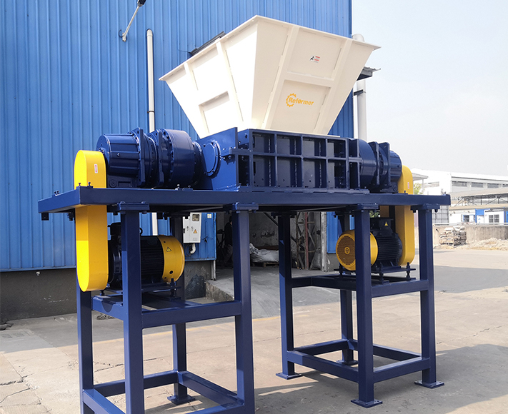 Double shaft shredders with low RPM, low noise, less dust, less maintenance costs etc advantages, mainly used in shredding metal, plastic, household garbage, Industrial solid wastes, agricultural solid wastes, medical wastes, chemical barrels etc. is controlled by Siemens PLC Program with functions of automatic controlling, start, stop, automatic reverse etc.