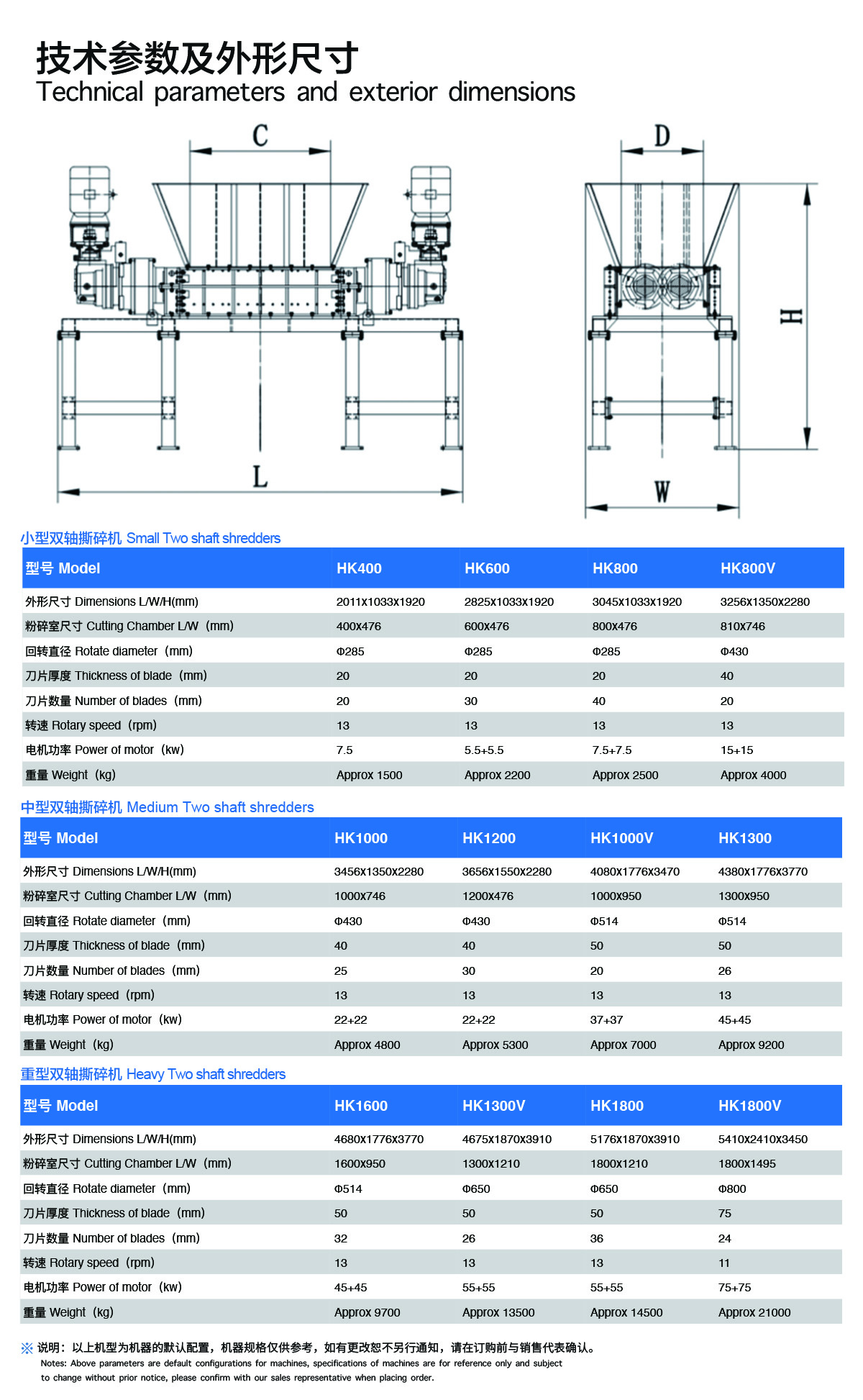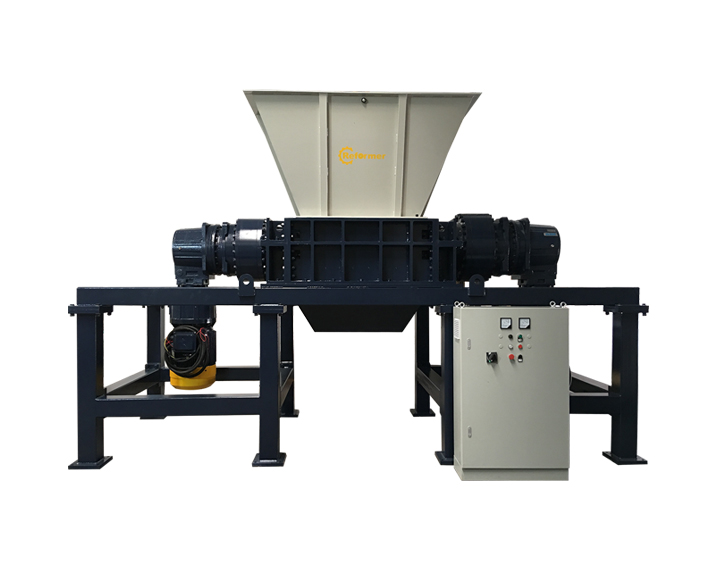Double shaft shredders with low RPM, low noise, less dust, less maintenance costs etc advantages, mainly used in shredding metal, plastic, household garbage, Industrial solid wastes, agricultural solid wastes, medical wastes, chemical barrels etc. is controlled by Siemens PLC Program with functions of automatic controlling, start, stop, automatic reverse etc.